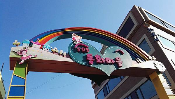童話村裡就外牆裝飾成可愛的童話故事形象,