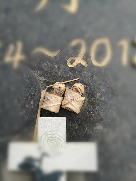 墓上有兩顆乾掉的檳榔,