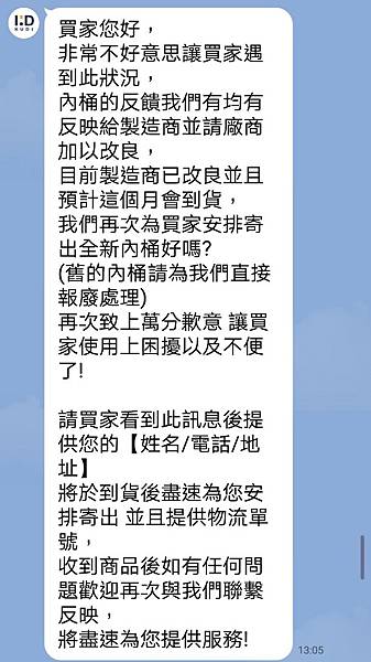 因為內桶不在保固範圍。