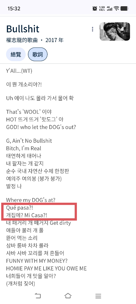志龍的歌詞裡有韓文、英文都很常見,